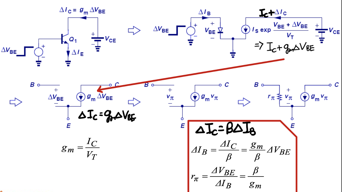 대신호 모델에서는 base- emitter 사이에 다이오드를 추가하는것으로 표현 되었지만 소신호 모델에서는 저항으로 대체 됩니다.