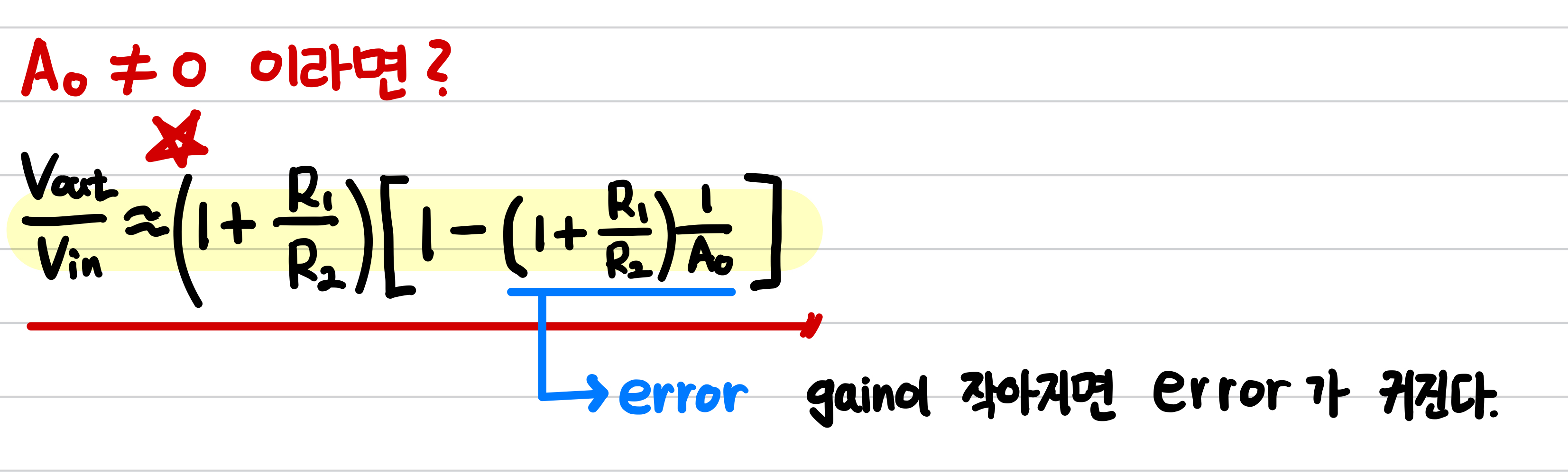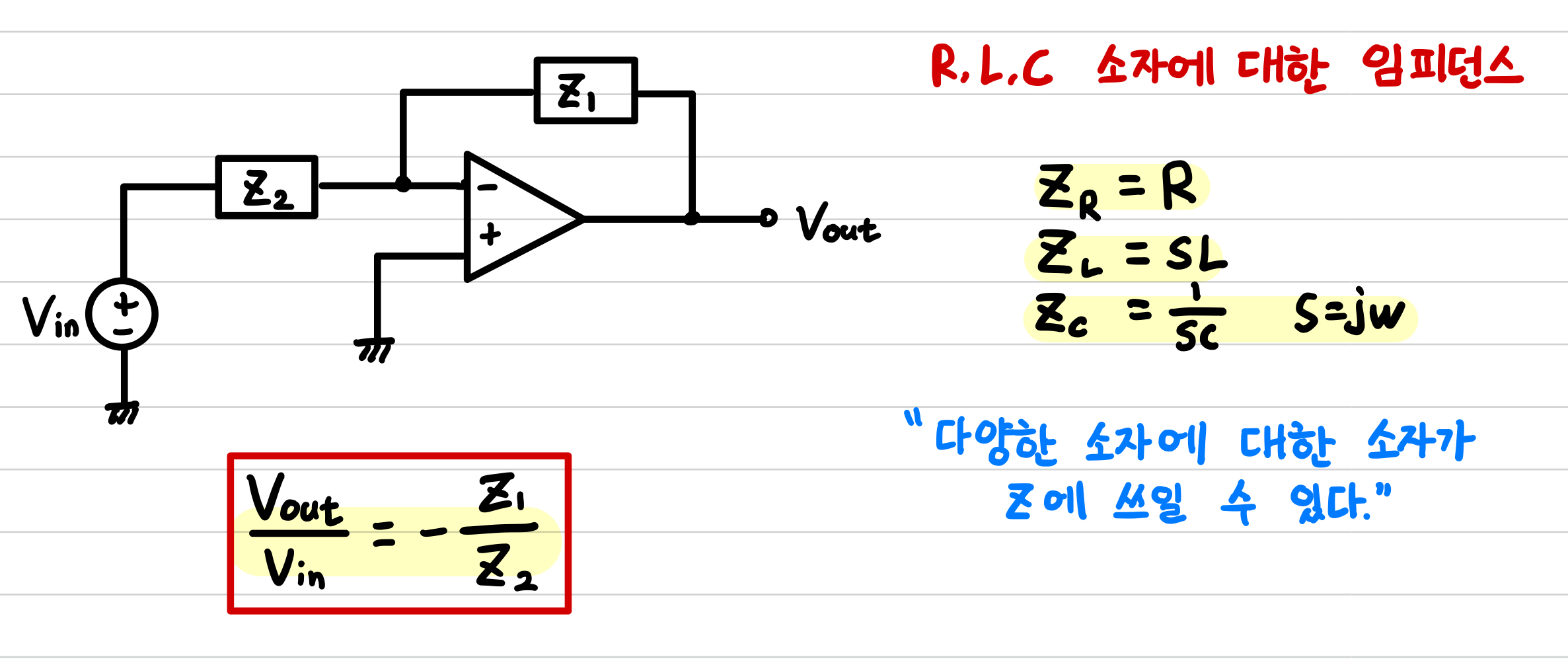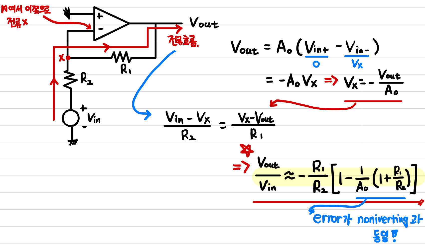 positive input이 ground되면 gain이 음수이다. >> inverting