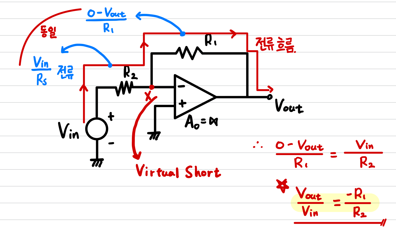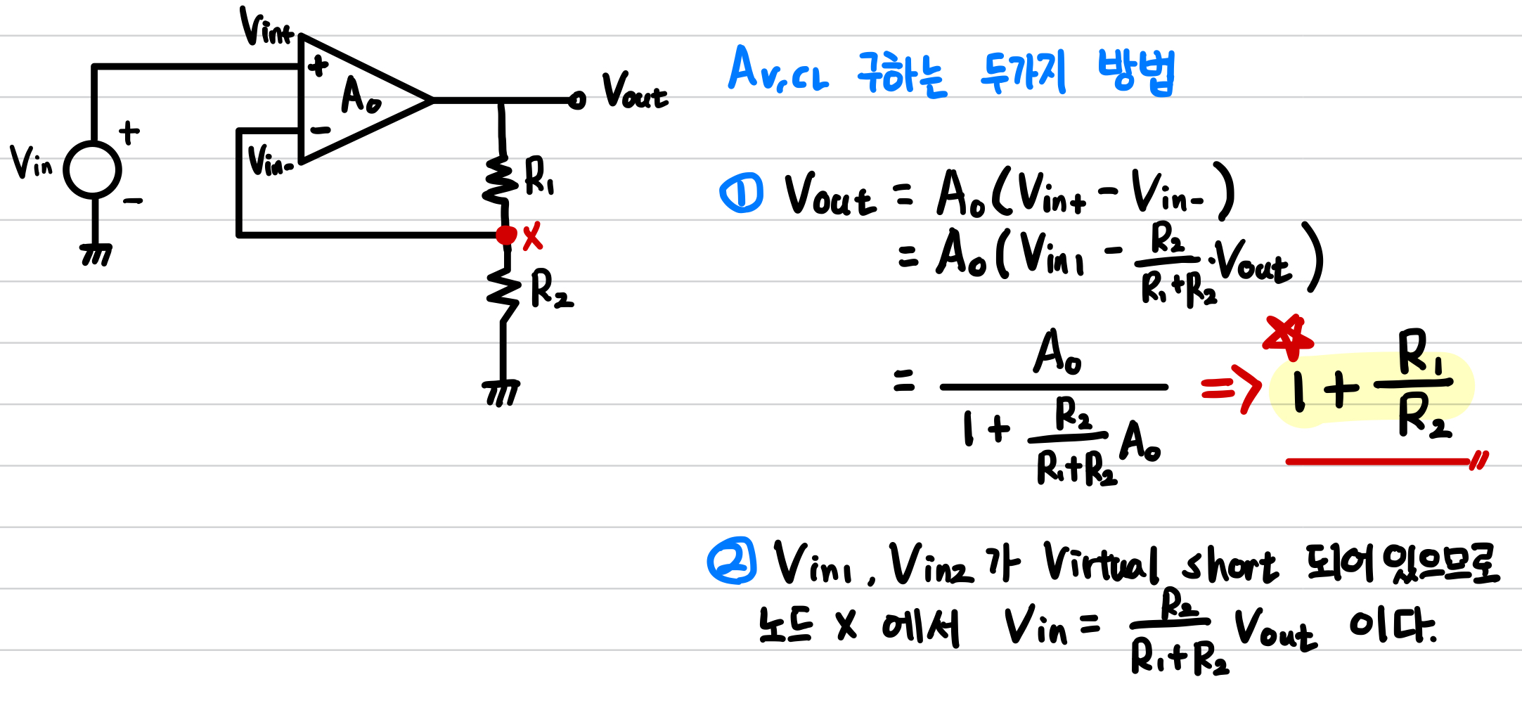 - Noninverting Amplifier(virtual short인 경우)
