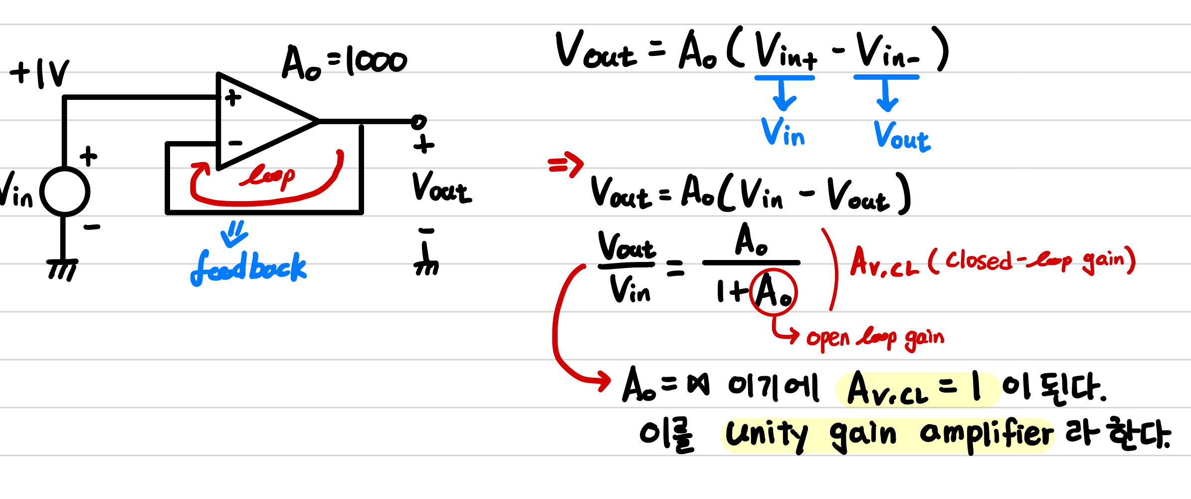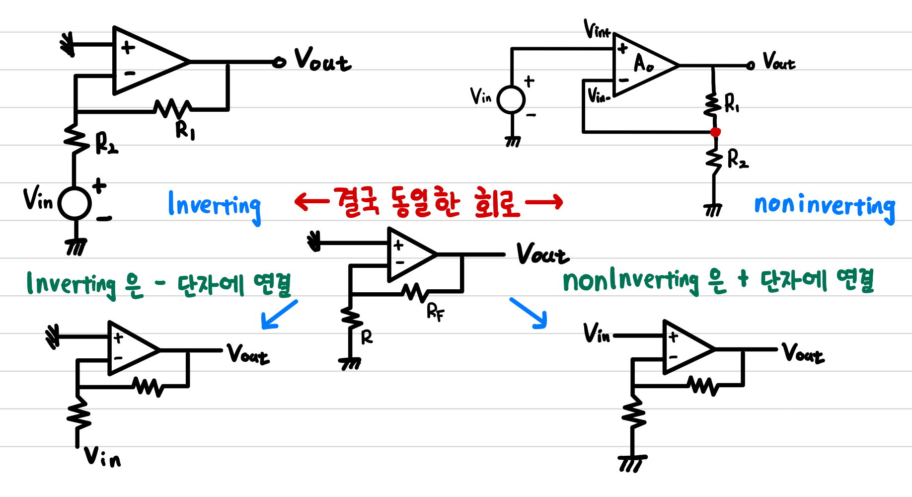negative input이 ground되면 gain이 양수이다. >> noninverting