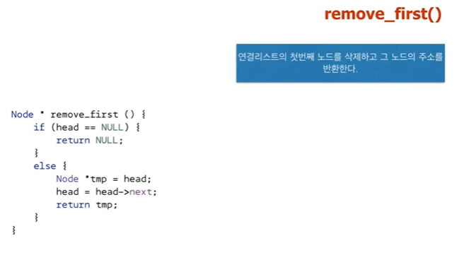 첫 번째 노드를 삭제한다는것은 간단합니다. 첫 번째 노드를 가리키고 있는 head를 두번째 노드를 가리키도록 수정하면 됩니다.