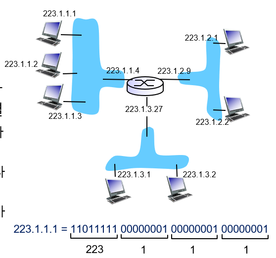 IP 주소 : host와 router interface 지정을 위한 32-bit 식별자