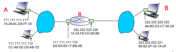 5. A는 목적지를 R의 MAC주소로하는 link계층 frame을 생성한다. 그 frame은 A에서 B로 전달된 IP datagram을 담고있다