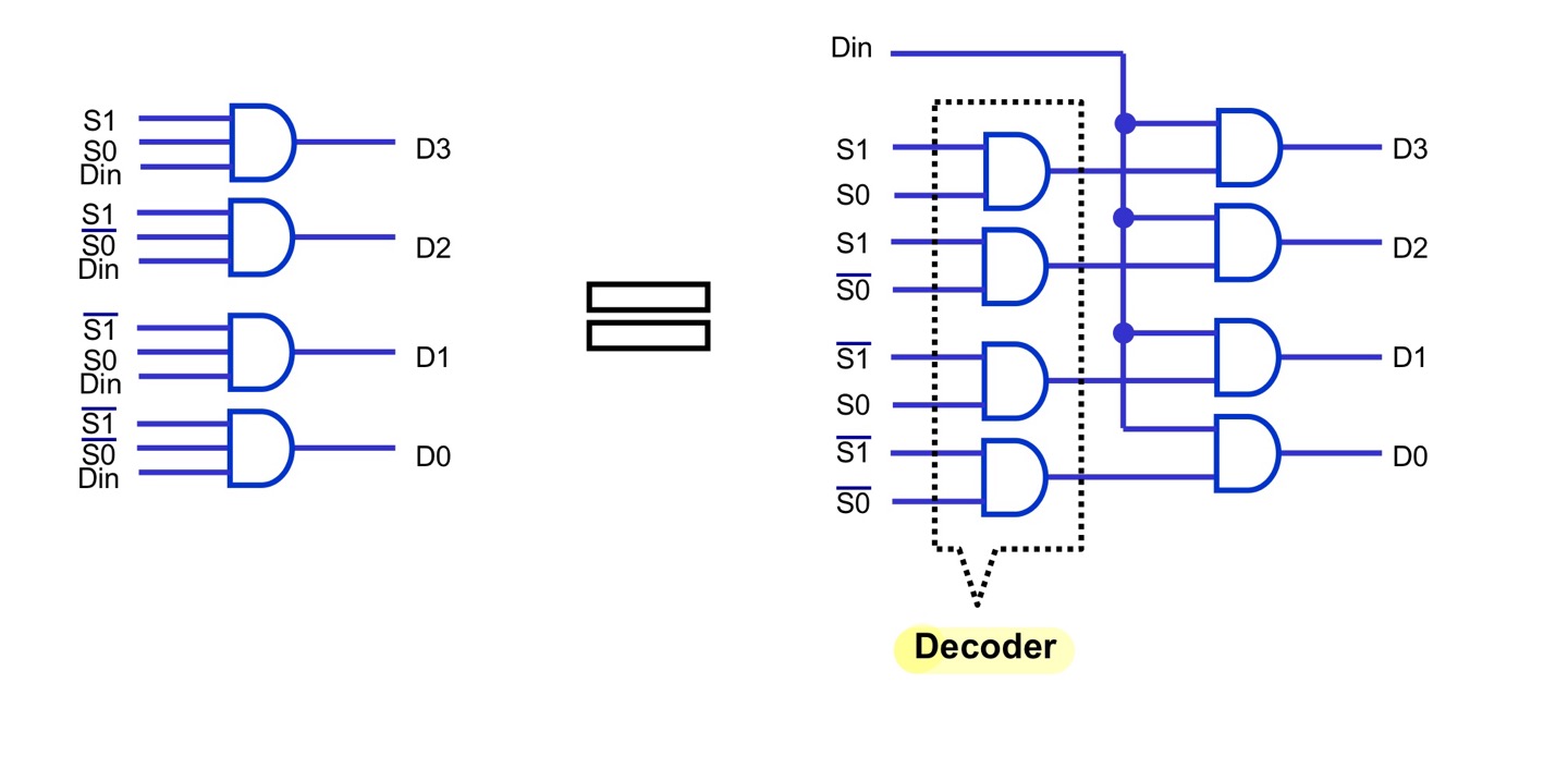 - S=1이면 D1=Din, D0=0, S=0이면 D0=Din, D1=0