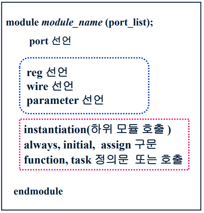 - 파란색 점선 박스에서 module에서 사용할 변수를 선언합니다.