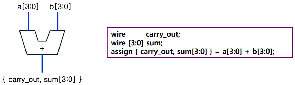 - 4비트 + 4비트 = carry와 4비트의 sum이 도출 될 것입니다. 즉 5비트의 결과에 대해 다음과 같이 사용할 수 있습니다.