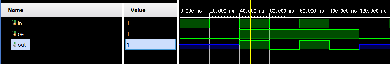 assign out = (oe) ? in : 1'bz;