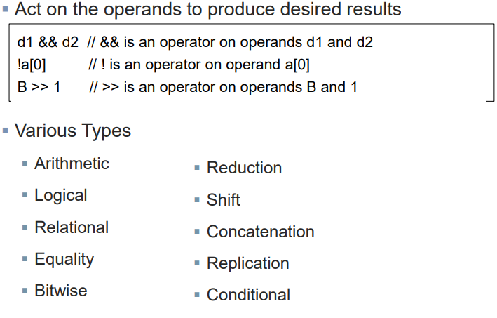 - 연산자의 오른쪽에 올 수 있는 것은 레지스터 또는 넷 또는 함수 호출문이다.