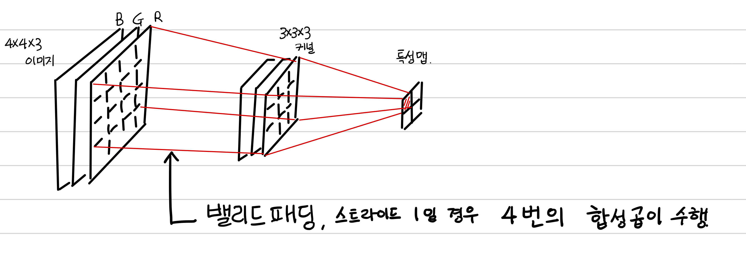 그림을 보며 합성곱이 어떻게 진행되는지 알아 봅시다.