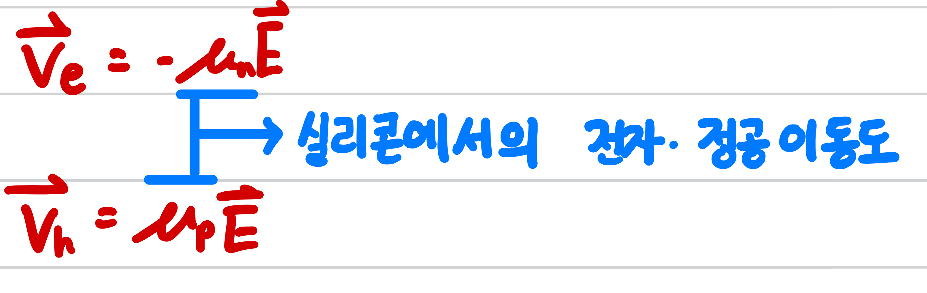이 공식에서 드리프트 전류 밀도는 일정한 전자와 정공의 전류밀도를 가지고 있는 반도체에 전기장 E가 가해진 것과 같다.