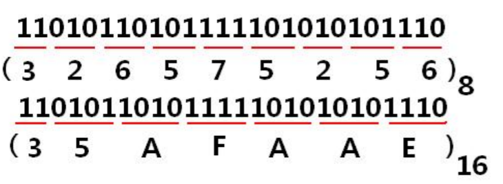 2진수를 3자리씩 끊으면 8진수로 표현할 수 있으며, 4자리씩 끊으면 16진수로 표현할 수 있다.